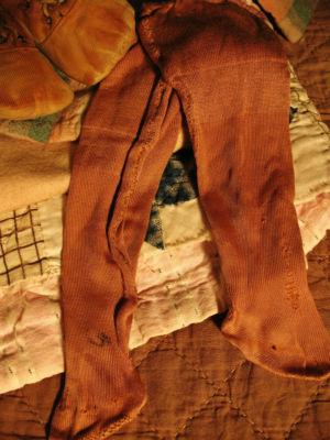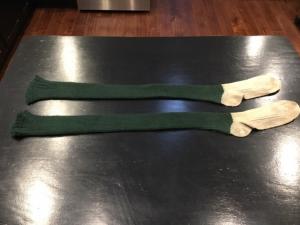 ANTIQUE PRIMITIVE WOOL EXTRA LONG STOCKINGS GREEN & CREAM