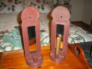 FABULOUS PRIMITIVE ~ MIRROR TIN CANDLE WALL SCONCE~PAINTED~NICE FORM~14 1/2" NR