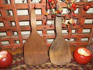 2 VERY EARLY ANTIQUE WOODEN BUTTER PADDLES WORN ROUNDED AND SMOOTH