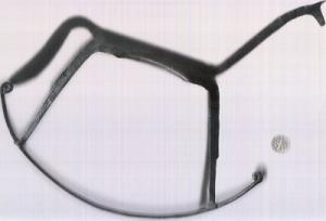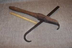 ANTIQUE AMERICANA UNMARKED BLACK IRON ICE/HAY TONGS (about 18 1/2" open)