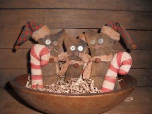 3 PRIMITIVE GRUBBY SANTA CAT DOLL ORNAMENTS BOWL FILLER* SKY*BOO*JESS*