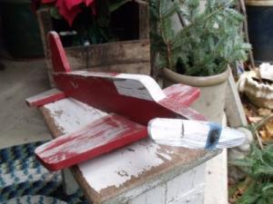 Primitive Vintage Wood Airplane Whirligig Shabby Red White & Blue Paint