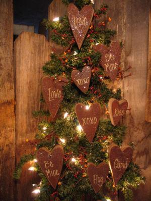 9 Glittered Folkart HEARTS ~ BE MINE XOXO LOVE ~ Primitive VALENTINE Sign Ornies