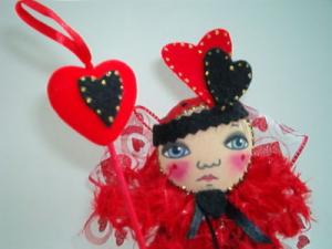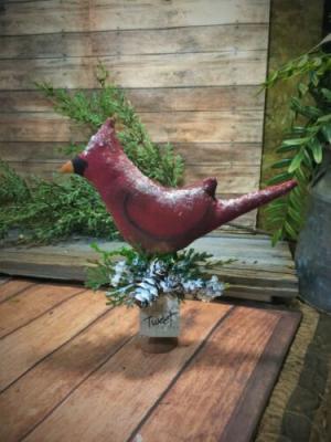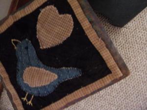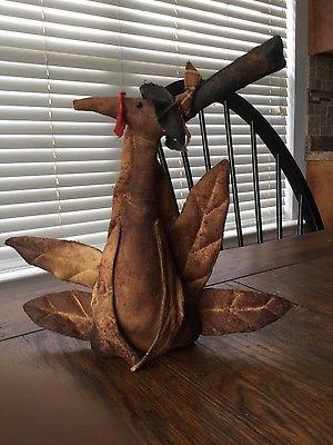 *Primitive 7x7in REDBIRD BOBBIN FABRIC HANDMADE Country old rusty doll*