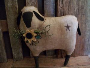 ★Primitive sheep shelf sitter doll = single flower = 8 x 7 in=★