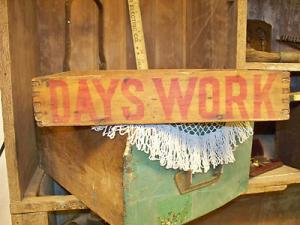 Old Antique Wooden RJ Reynolds DAYS WORK Plug Tobacco Box Dovetail Corners
