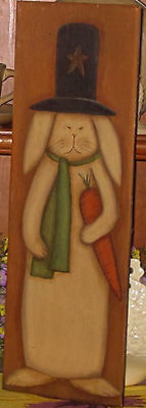 *~*PRIMITIVE*~*HP FOLK ART PRIM BUNNY *~* CARROT *~* BARN STAR HAT *~* BOARD