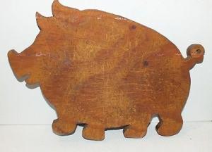 Primitive Wood Cutting Board Pig Hog Vintage E8