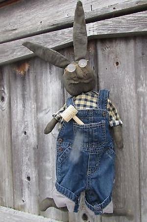 Primitive Grungy Folk Art Olde Grandpa Marvin Bunny Rabbit