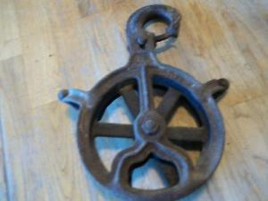 ANTIQUE CAST IRON 9" WELL PULLEY PRIMITIVE FARM BARN WATER