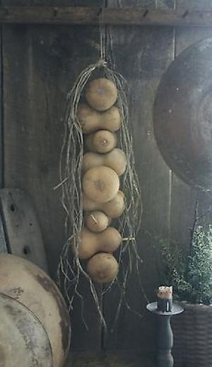 Primitive Early Homestead Look Hanging Dried Bottle Gourd Cluster Garland