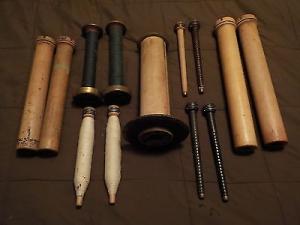 Lot of 13 Assorted Vintage Primitive Large / Small Wood Textile Spools Bobbins