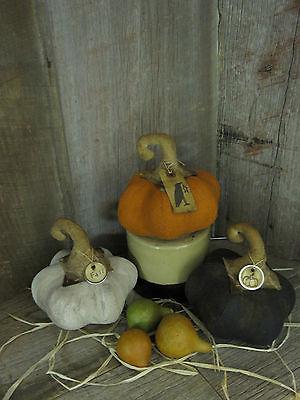 Primitive Grungy Grubby Stained Pumpkin Trio Handmade Fall Autumn 6"H Handmade