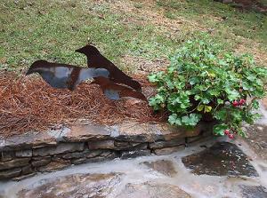 Primitive Rusty Metal Set of Three Hand Cut Crows Old Recycled Tin