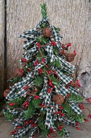 MINI RAG & BERRY TREE W/ RUSTY BELLS * PRIMITIVE COUNTRY DECOR CHRISTMAS