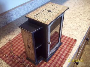 PRIMITIVE CRACKLE BLACK STAR WOOD GLASS FRONT CABINET COUNTRY FARMHOUSE DECOR