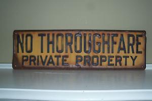 Vintage Stamped metal Sign " NO THOROUGHFARE PRIVATE PROPERTY " 22" x 7"