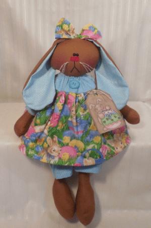 Primitive Handmade CHOCOLATE EASTER BUNNY w Floppy EARS Doll Shelf Sitter
