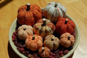 Primitive Fall Hand Dyed Homespun Mixture Pumpkin Ornies, Different Plaids