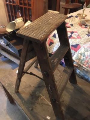 Vintage Primitive 3-Step Stepstool Wood Folding Stool Ladder, Paint
