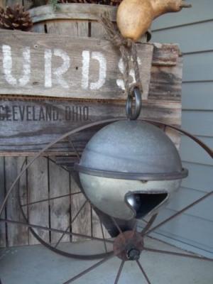 HUGE primitive metal aged jingle bell~aged rope~Christmas/Winter/Holiday