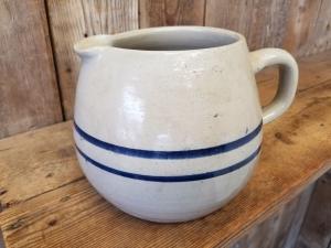 Vintage Blue & White Band Stoneware Milk / Cream Pitcher Primitive Farm Kitchen