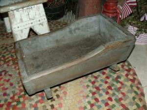 Small Early Primitive Antique Cradle Blue Milk Paint Square Nails Ohio Farm Find
