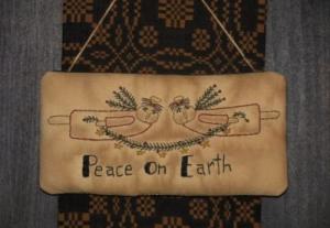 Primitive Stitchery Hanger ~ Peace On Earth Angels ~ Christmas/Winter