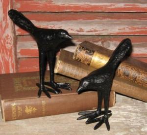 2 BLacK CROW Raven BiRd Statue~For Wood Table/Shelf/Desk/Mantel-Primitive Decor