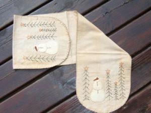 Primitive Snowman Trees Table Runner 44" Winter Table Runner
