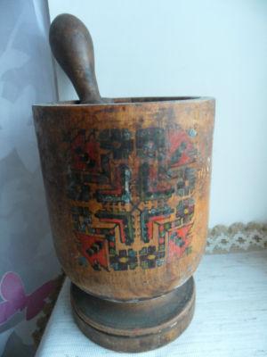 Antique Primitive Wood Mortar and Pestle Large Hand Turned Apothecary Tool