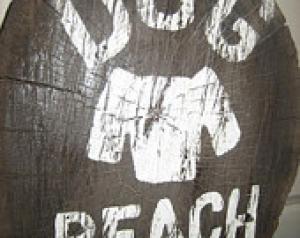"Vintage" DOG BEACH beach...camp..campground..WOOD LOG SIGN..campy cottage