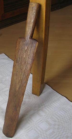 Antique vintage primitive wooden tool flax paddle scutcher carved Lithuania 1900
