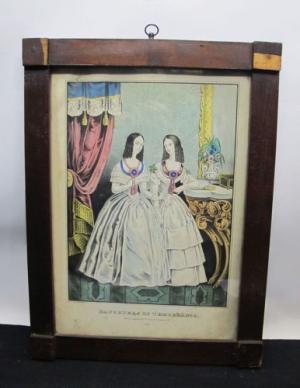 Mid 1800's Authentic J. Baillie DAUGHTERS Antique Hand Colored Lithograph yqz