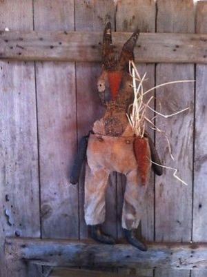 Primitive Folk Art Extreme Easter Bunny Rabbit Doll with Carrot 23" tall Grungy