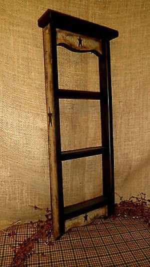 PRIMITIVE WOOD WALL LADDER SHELF TAN CRACKLE HEART STAR COUNTRY FARMHOUSE DECOR