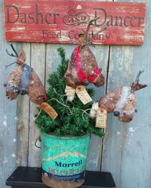 3 Primitive REINDEER POKES~RUDOLPH~DANCER~DASHER~OrniesStone Mt Prims Christmas