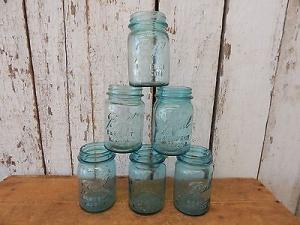 6 Antique Blue Glass Ball Mason Pint Fruit Jars Vintage Farm Decor Crafts 1343