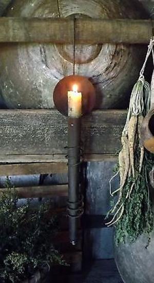 Primitive Early Lighting Inspired Black Hog Scraper Candle Holder w/Stub