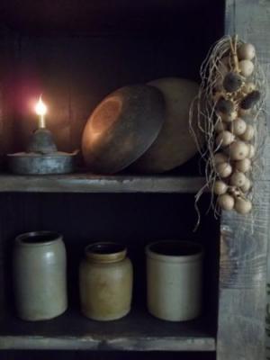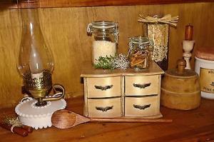 * PRIMITIVE SPICE CHEST & GLASS JARS GATHERING WITH WOODEN SPOON * KITCHEN DECOR
