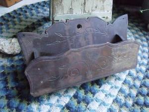 Primitive Antique 1800s Carved Wood Comb Box Shabby Finish Wall Mount