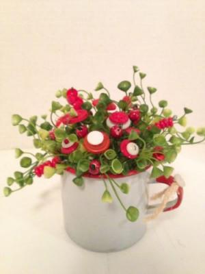 VTG Valentine❤Button Bokay/Granite Ware/Country Home Decor-Shabby Cottage Chic