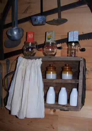 Primitive wooden make-do riser~old lye soap~scrubber-sink side gathering