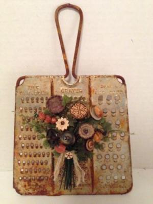 Vintage Button Bokay-Tin Grater-Early Prim-Farmhouse-Country Decor-Rustic-Ornie