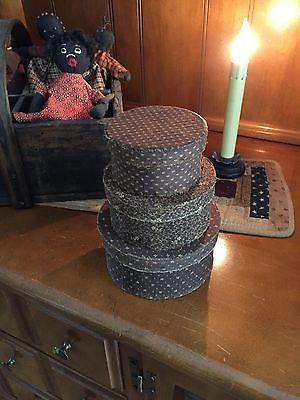 Primitive Pantry Boxes Covered Brown Repro Civil War Fabric