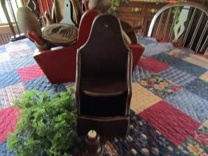 VINTAGE PRIMITIVE CANDLE BOX WITH SMALL SHELF AND BIN/CANDLE * GREENS