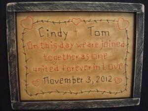 Primitive Country Personalized ~WEDDING SAMPLER~ Stitchery 12" x 9 1/2"