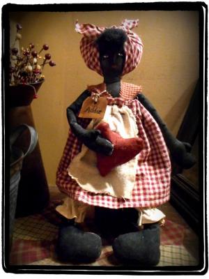 Primitive Handmade` Black Mammy `Addie`Doll With her Heart` `One of a Kind