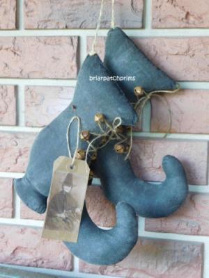 Primitive Set of Hanging Witch Boots Fall Halloween Decoration Folk Art