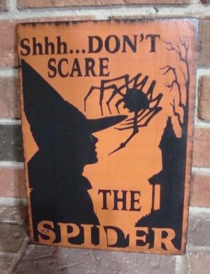 PRIMITIVE STYLE HALLOWEEN WOOD WITCH SIGN “SHHH..DON’T SCARE THE SPIDER” HP